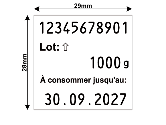 Dieses Blitz Datiergerät ist speziell für die Lotierung und datierungvon von Käse konzipiert worden. Die Bandbelegung ist so gewählt, dass eine 11 Stellige Lot Nummer, das Gesamtgewicht und das "zu Verbrauchen bis:" Datum gedruckt werden kann.